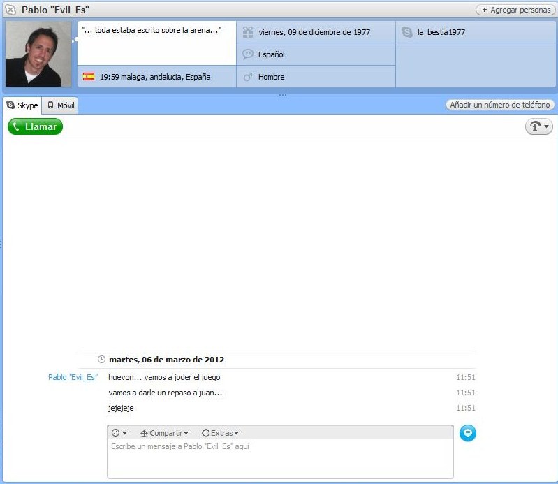Bueno ya estaba un poco cansado de mantenerme callado , veo q la personalidad y la amistad en el juego dura 3 seg ,y va por los moderadores ,de ohhh ferkpa jefe q pasa a la nada en 3 segundos y con eso a todo los q han tratado con ellos solo dejare un pantallazo y ya juzgareis. Y aclaro ,a mi me han sacado de administrador por q no se hacer ganar al juego dinero ,y han vuelto a llamar al administrador de siempre... el mismo que deja esto en skype a los moderadores . VAMOS A JUGAR EN EL SOL, TODOS LOS DIAS SON DIAS DE FIESTA, |