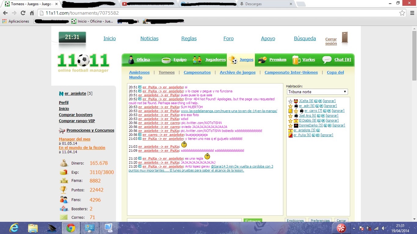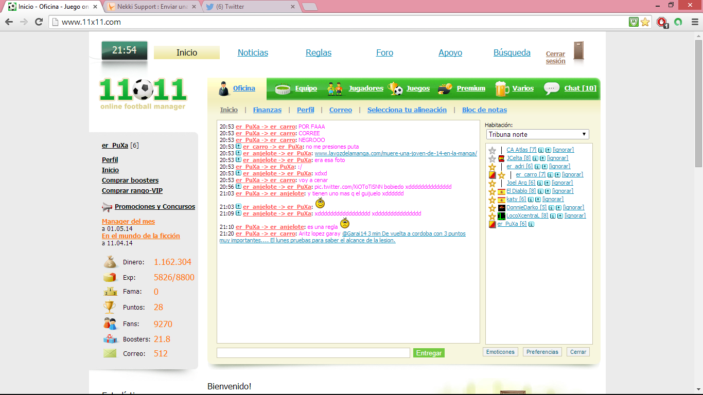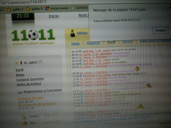 Se supone que los mods estan para ayudar.... tenemos er_anjelote er_puxa y yo un problema con el chat, casualmente los 3, y solo por ese motivo no nos cree nadie e incluso el moderador de turno jymy pasa de nosotros y se rie.... adjunto otra prueba mas. La foto tomada a las 21.46, la sancion qe va hasta mañana a las 21.31 y el ultimo mensaje qe leo en el chat