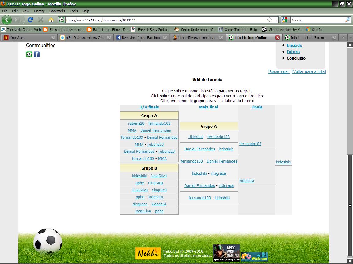 huummm... pensava k se ganhava os 4.500 na final... pena... sendo assim nao vale apena o premio... lol lol já é um prémio razoável... (uma dica) aposte no estádio para fazer mais dinheiro. Com um estádio grande é garantido sempre uma boa receita. estive a fazer as contas deste torneio: 2 jogadores ganham = 600 (que passam para 2ª eliminatória, mas não chegaram à final) 1 finalista vencido = 1200 1 Vencedor = 2100 total 4.500 |