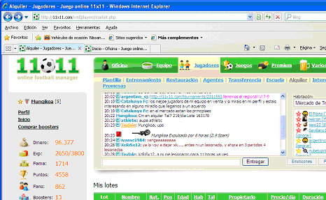 Hola! hace 5 min. me han baneado por 6 horas, el motivo spam aparentemente en la sala de chat, pretendia dar a conocer un jugador en alquiler en la sala de transferencias cuando zas! sancion al canto. En ningun momento es mi intencion hacer publicidad de mi jugador en el chat, ya que segun mi ordenador estaba en la sala de transferencias, como demuestra la captura que adjunto.