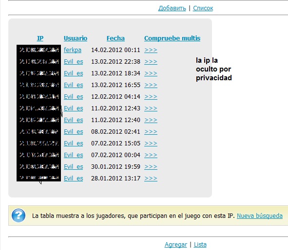 y esto a que viene? sigo esperando que me expliquen como es `posible lo de ser lvl3 cuando as sido lvl9 y tienes todos los edificios, por cierto en esa captura salgo yo, salgo favorecido y todo te copio una ip y ya que las podeis mirar vereis de quien es? envia lo que quieras -------------------- En la vida soy como un villano, normalmente un villano no tiene miedo, sabiendo las consecuencia de sus actos, continua con sus ideales sin miedo a fracasar, todo aquel que tenga miedo de hacer algo, qué sepa, que las personas que no tienen miedo a equivocarse, son capazes de transformar el mundo. No pediré perdón por mis actos. --Chemi23-- |