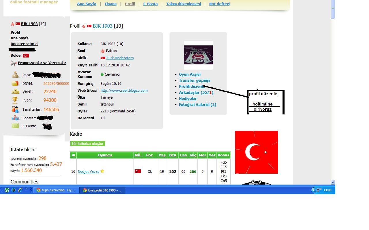 Profil düzenlemek için yapılması gerekenler ayrıca bu alanda kendinizle ilgili bilgiler verebilir şifre değişikliğinizi yapabilirsiniz[color=#FF0000][size=6] -------------------- BJK 1903