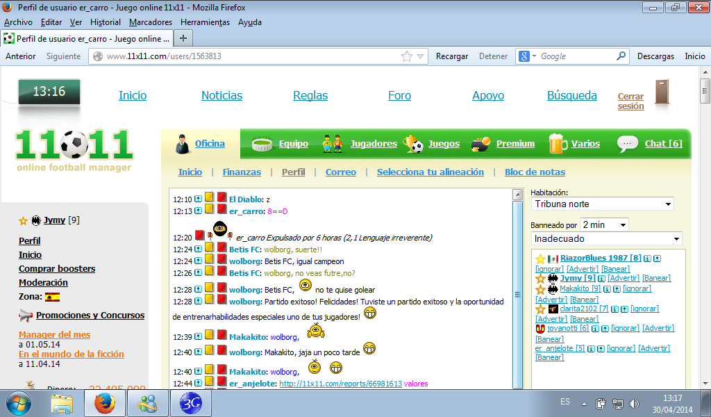 Adjunto captura del juego para q se vean los valores que este personaje tiene, q siempre esta tirando contra los moderadores y santo lo q se dice santo no es, ademas ya le informo por aqui que la sancion se le ha subido a un dia, 6 horas por el lenguaje irreverente y el resto por la gracia y el correo q ha mandao a un moderador, y todabia creemos que hemos sido generosos con la sancion q podria a ver sido superior. un saludo. Si por poner un pene le echas 1 dia te deberias banear de por vida por mofarte de nosotros con rojas absurdas, saludos. -------------------- PUXA XIXON, PUXA ASTURIES Y ARRIBA ESPAÑA