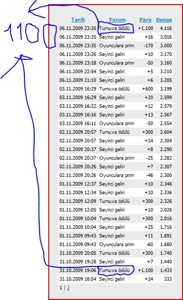 kupalarımda ikidir oluyor ilkine bişey demedim ama ikincisinin olması çok kötü oldu. kuzey kupasını iki kez kazandım( birini yeniyken birini dün akşam). ilk kazanışımda 1100 para gelmişti. o zaman bayağı acemiydim umarsamadan geçtim. ama dün akşam kuzey kupasının yanında 2300 para ödülü yazıyordu ve bende bunun için turnuvaya katıldım. katıldığımda yarı finaldede finaldede birer booster kullandım ve turnuvayı kazandım. ama baktığım anda hesabıma turnuva ödülü olarak 1100 para aktarılmış. bu ne demek oluyor ben o kadar boosteri boşuna mı harcadım acaba acil yardım edebilir misiniz??? eğer sorun ise paramın geri kalanı yani (normalde 4600 olan bana 2200 geldi.. ) 2400 daha aktarılırsa sevinirim. eğer olmayacaksa veya ödül kısımı yanlış yazılmışsa lütfen 2 adet boosterimi geri yollarsanız sevineceğim. mesajım resimlidir. Jam'in izah ettiği gibi, bu bir bug değildir. Belirtilen rakam, yani toplam ödül, her katılımcıya tur atlaması için verilen mükafatlardan oluşur. |