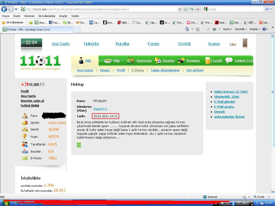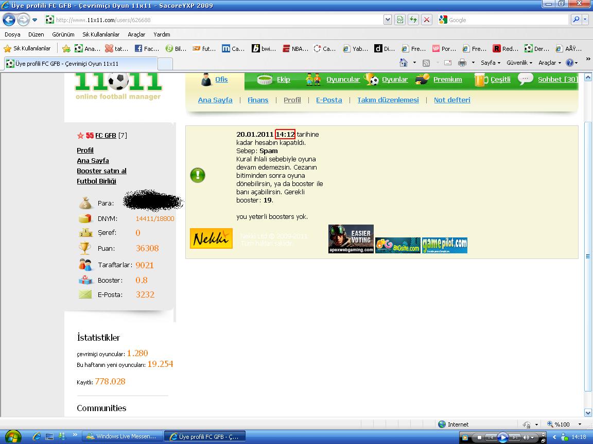 ANCAK 15.01.2011 TARİHİNDE BİR KULLANICI SOHBETTE KÜFÜRLER EDİYORDU BENDE KÜFÜR EKRANDAN GİTSİN DİYE NOKTALAR KOYDUM ZORUNLU SPAM YAPTIM...