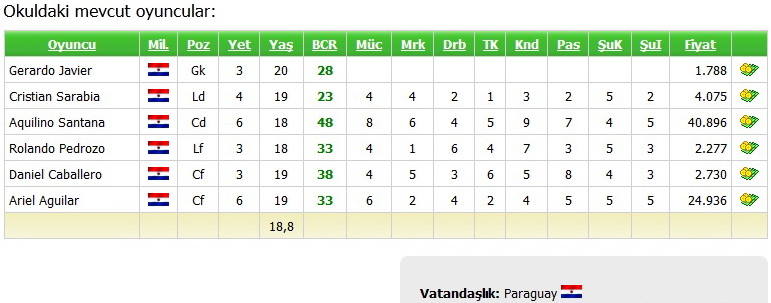 Spor Okulu her sabah 04:03'te yenilenir. Okula gelen oyuncular 17-20 yaş arası, 23-48 beceri aralığındadır.
