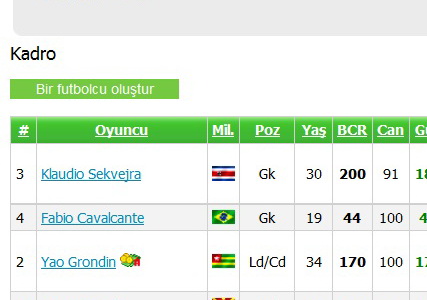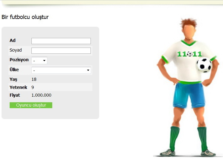 Oyuncunun yapım maliyeti 1.000.000 (1M) oyun parasıdır. 60 beceri ve skilleri rastgele dağıtılmış olarak takıma dahil olur
